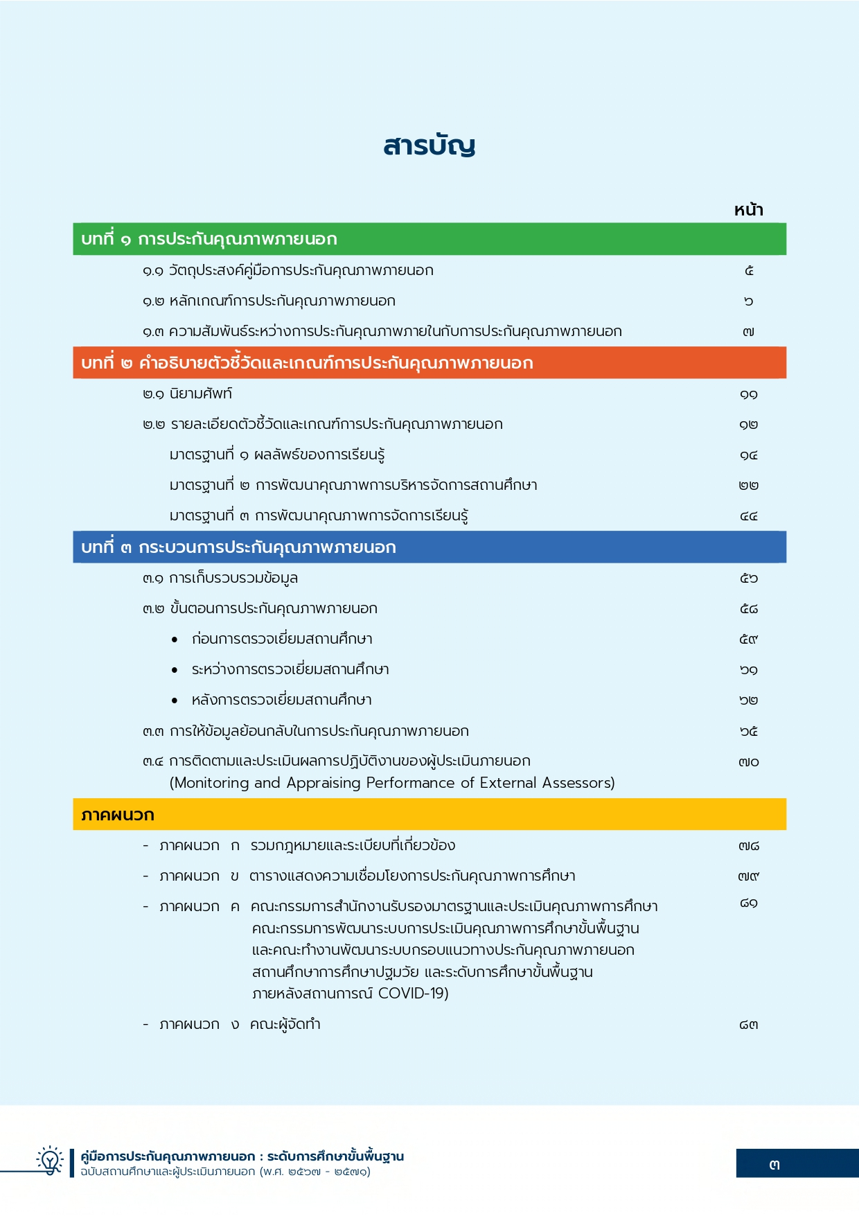 ตัวอย่างไฟล์เอกสาร คู่มือกรอบแนวทางการประกันคุณภาพภายนอก ฉบับสถานศึกษา ระดับการศึกษาขั้นพื้นฐาน